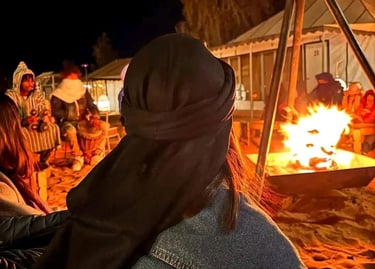 In the afternoon, depart in a 4x4 from Foum Zguid for a journey across the Iriki National Park. This adventure offers exceptional views of desert plains and impressive rock formations, often called the "Moroccan Colorado." Arrive at the first dunes of Erg El Mhazil, where the bivouac will be set up. Enjoy a stunning sunset before sharing a warm dinner around a campfire under a starry sky. Overnight in the desert, lulled by the silence of the dunes.