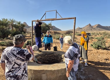 Early in the morning, walk for 2 hours toward the village of Zaouiat Sidi Abdenabi. A well-deserved break awaits you at a guesthouse, where you'll have a typical lunch and rest in the shade of an acacia tree. In the afternoon, return by vehicle to Foum Zguid, crossing the arid landscapes of the dried-up Iriki Lake. Arrive by the end of the day.